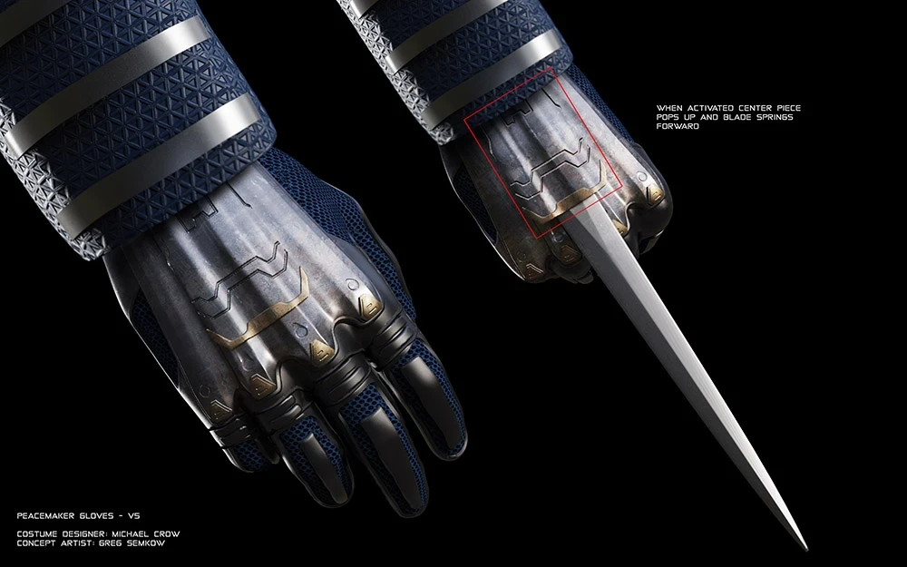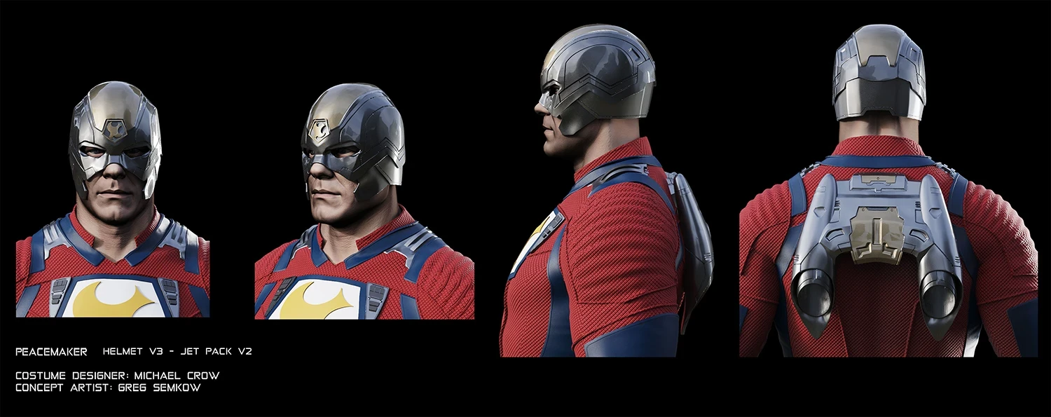 I was lucky enough to have the opportunity to work with the awesome Michael Crowe, costume designer on Peacemaker season 2. These are the final designs for Peacemaker's new suit approved by James Gunn. Michael and I iterated through many different versions for the suit, various helmets and gloves. Working with Michael was an absolute pleasure, as always.