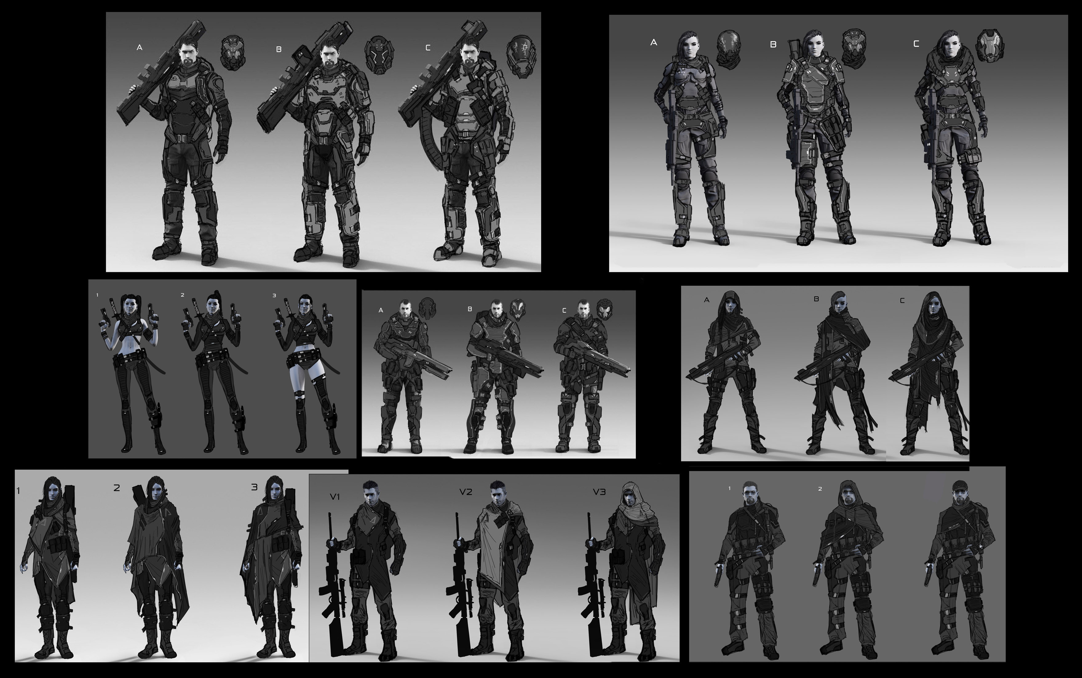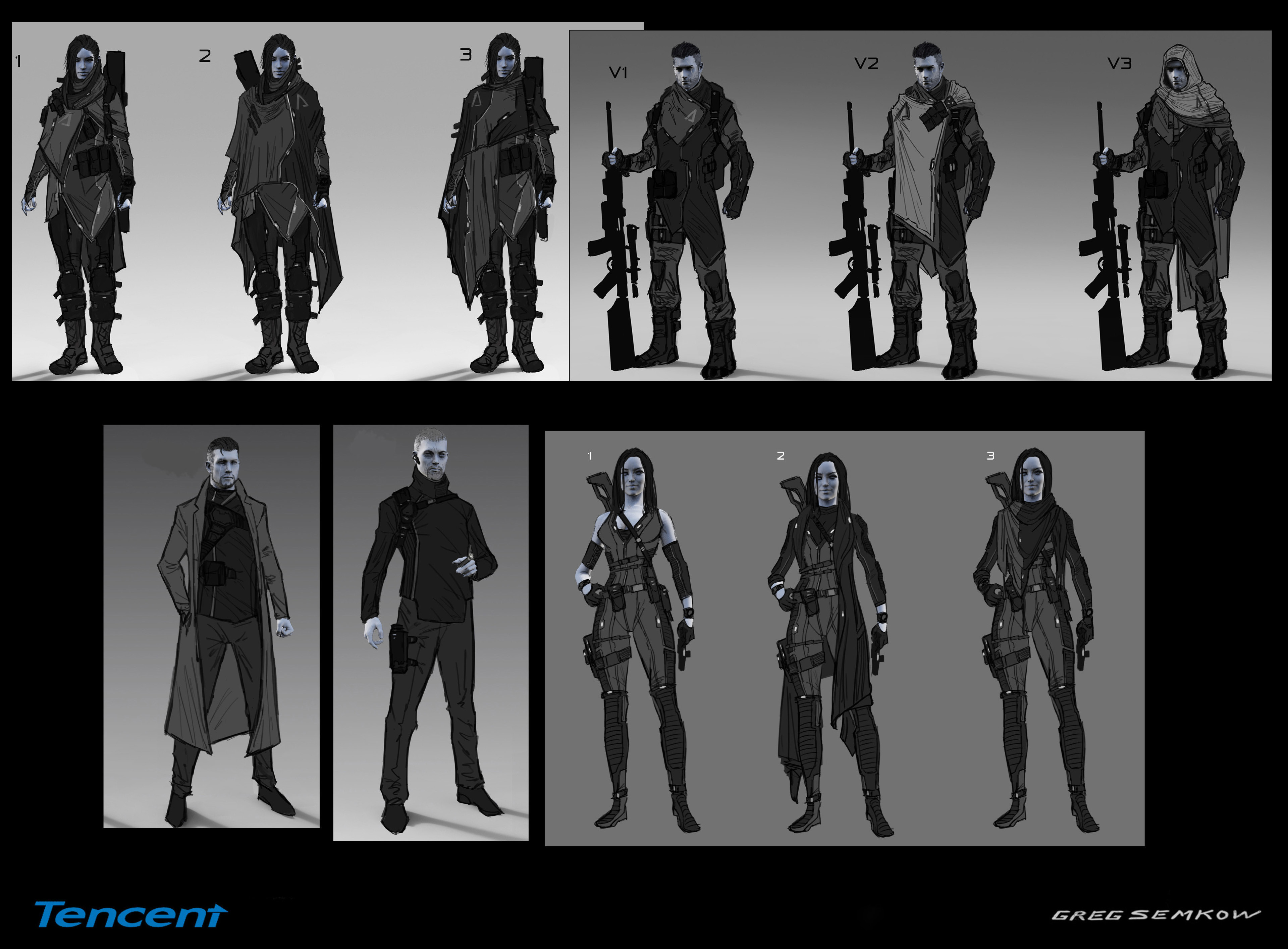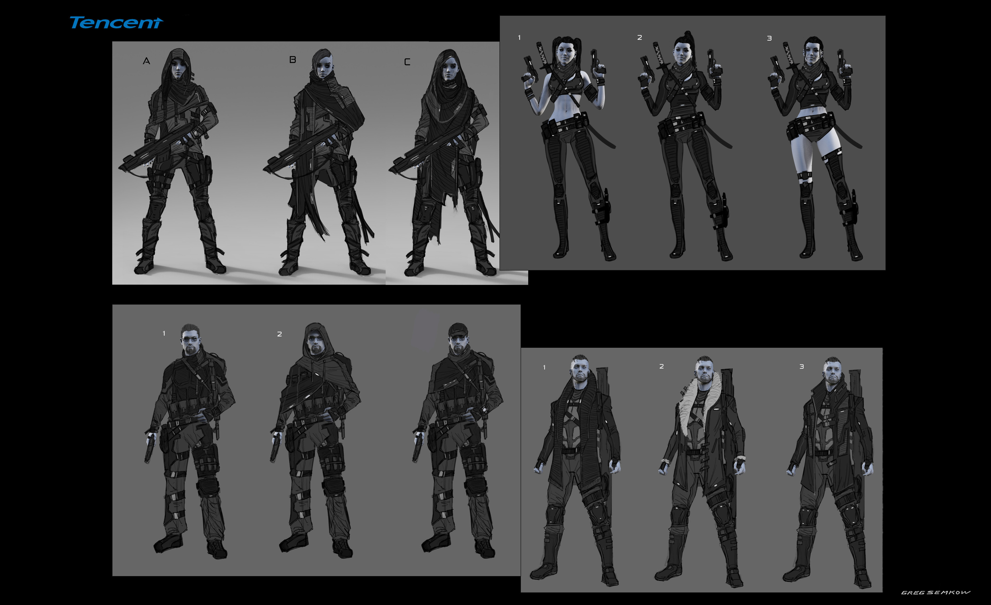 Rough character paints and sketches done for Tencent games Code franchise.