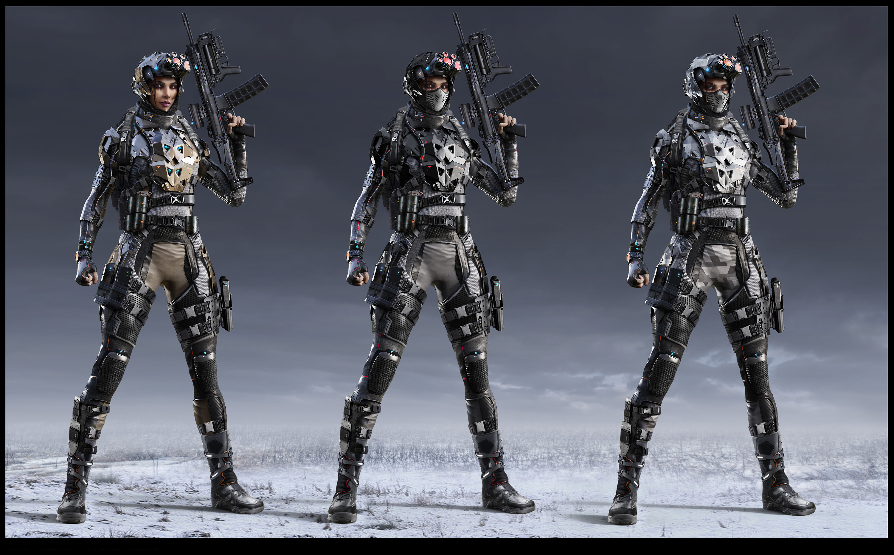 Selected character iterations from a cancelled AAA game project.